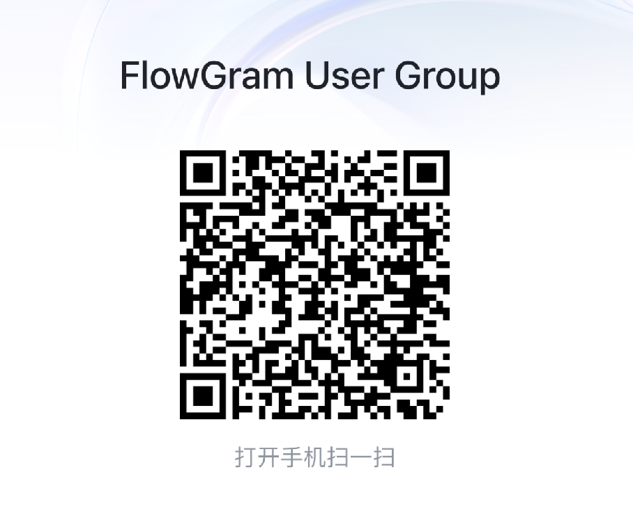 - Lark: Scan the QR code below with Register Feishu to join our FlowGram user group.