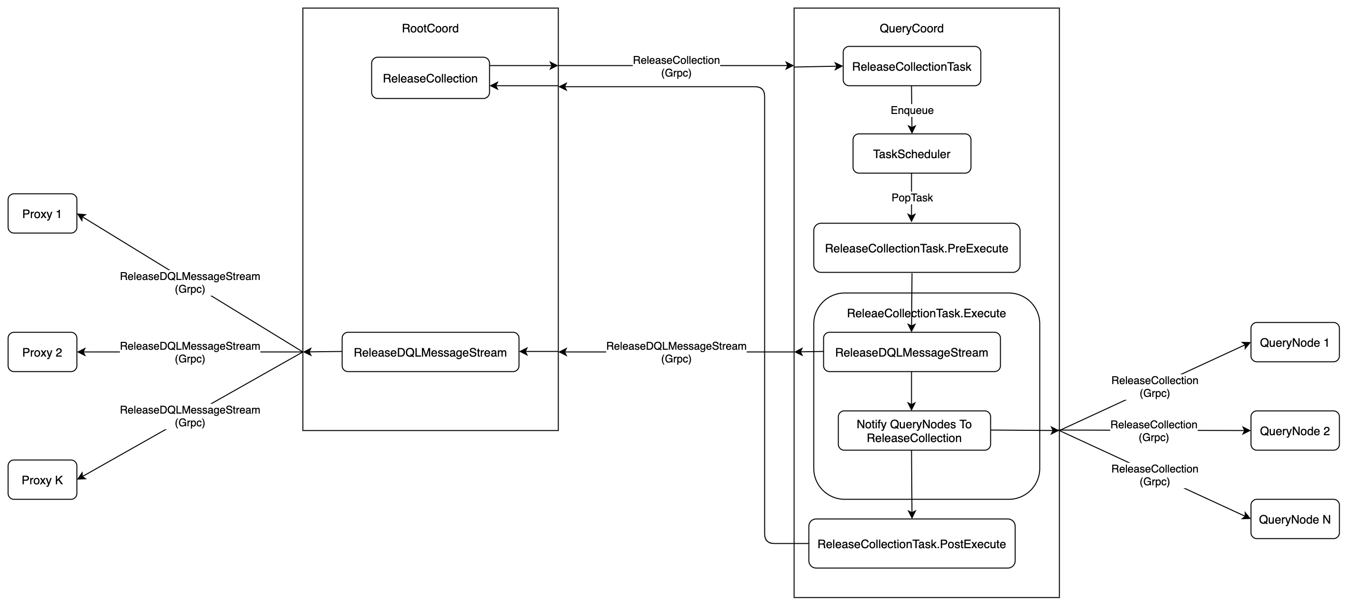 1. QueryCoord would wrap ReleaseCollection into ReleaseCollectionTask, and push the task into TaskScheduler