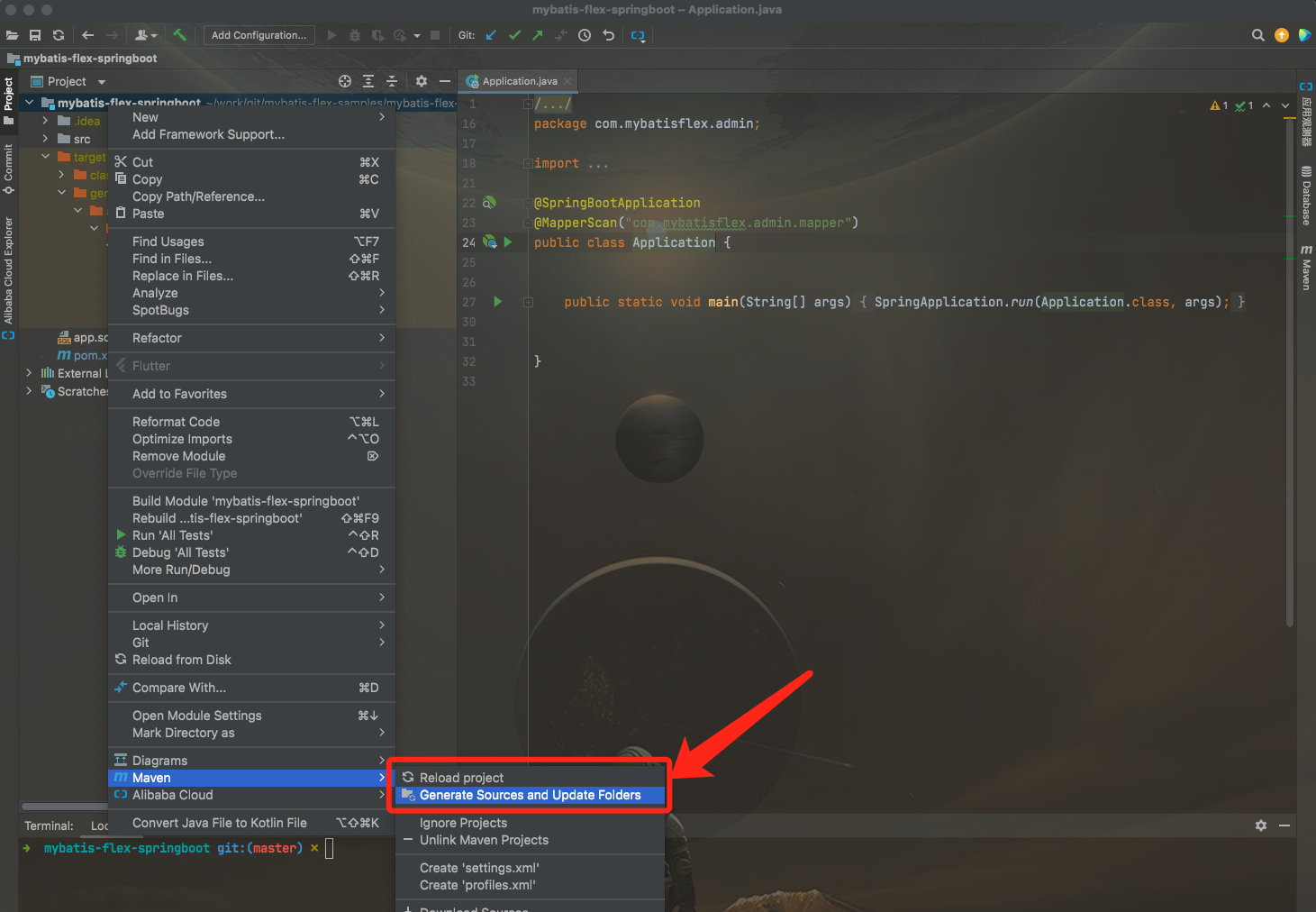 要对 MyBatis-Flex 的 APT 细节选项进行配置,你需要在项目的 根目录 ( pom.xml 所在的目录)下创建名为 mybatis-flex.config 的文件。